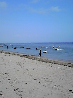 ほとんど毎日ビーチに出動していたんですけど、きれいな海ではあったんですけど、私の用事のあったあたりはなんかリゾートビーチの場所じゃなくて、海藻とかを養殖してる浜で、「時間があったら泳いでもいいんだぜ」なんて言われたけど、海藻畑と海藻取りの漁師(?)をよけて泳ぐというのもなァ。